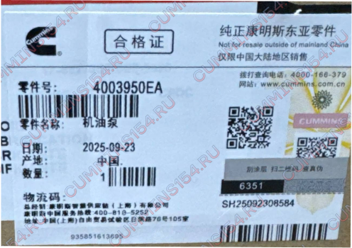 Применение: Насос масляный Cummins ISM, QSM, L10