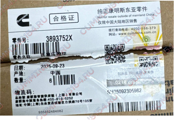 Кольцо поршневое (компрессионное) Cummins M11 3893752X
